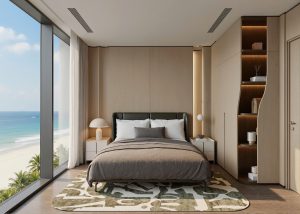 - Điểm nhấn: Ban công kính rộng mở với tầm nhìn bao trọn mặt biển hoặc nội khu xanh mát.
