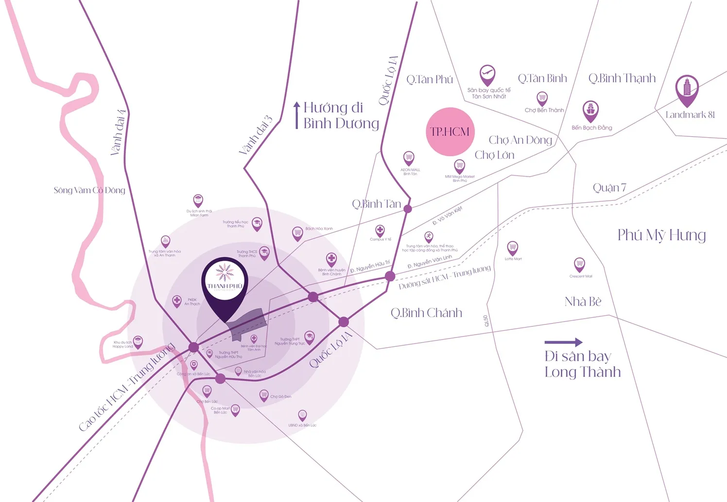 👉 Nằm tại vị trí cửa ngõ kết nối TP.HCM và các khu vực kinh tế trọng điểm, Thanh Phú Centre Point vừa đảm bảo sự thuận tiện trong di chuyển, vừa mở ra cơ hội gia tăng giá trị nhờ đà phát triển mạnh mẽ của hạ tầng khu vực.