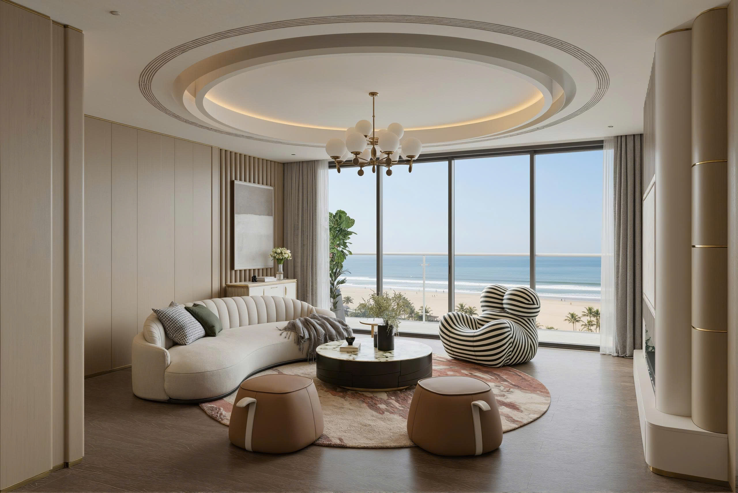 Dự án phá vỡ mọi giới hạn về không gian với hệ sinh thái tiện ích “All-in-one”. Từ những bãi biển riêng tư, hồ bơi vô cực dài 120m đến các Sky Bar tầng mái và rạp chiếu phim ngoài trời, mỗi bước chân của cư dân đều chạm đến một tầng cảm xúc mới của sự xa hoa.
